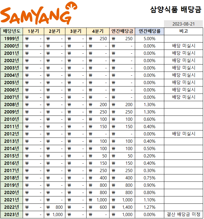 삼양식품은 반기, 결산 배당을 실시하며,