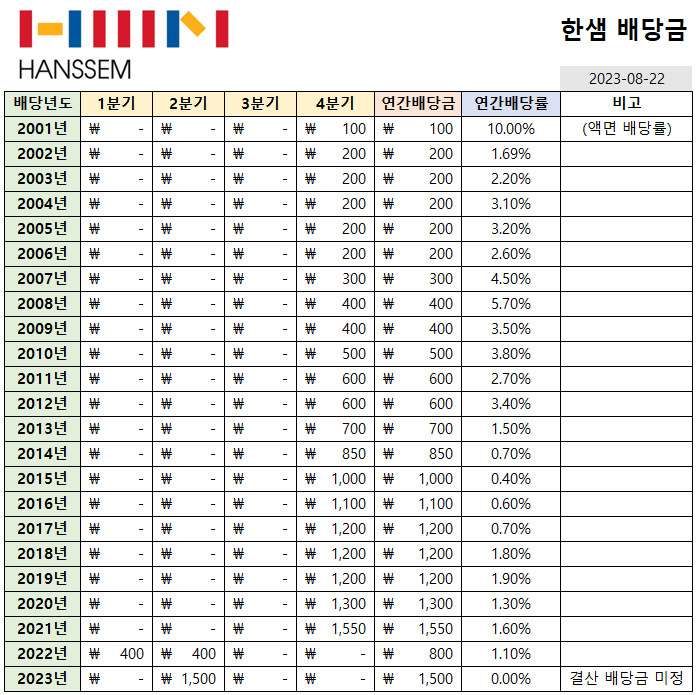 | 한온시스템 배당금, 배당률, 주주환원정책 (2001년~현재까지) (0) | 2023.08.24 |