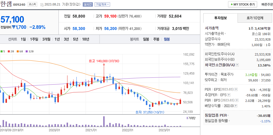 안녕하세요, 주식 인플루언서 윤하공쥬 입니다. 오늘 소개 해드릴 종목은 KOSPI 시가총액 121위, 한샘...