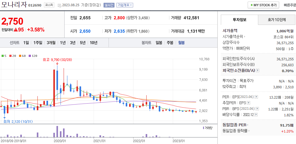 모나리자는 별도의 주주환원정책을 발표하지 않았습니다.