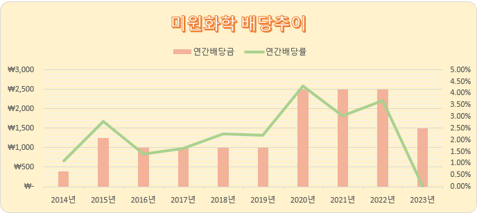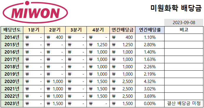 미원화학은 분기배당을 실시하며,