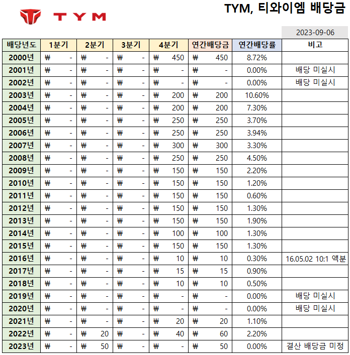 TYM, 티와이엠은 반기, 결산배당을 실시하며,