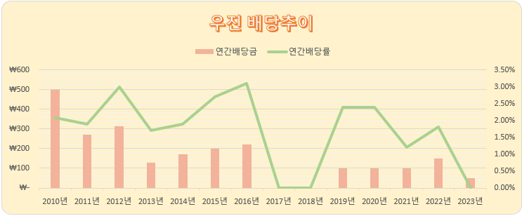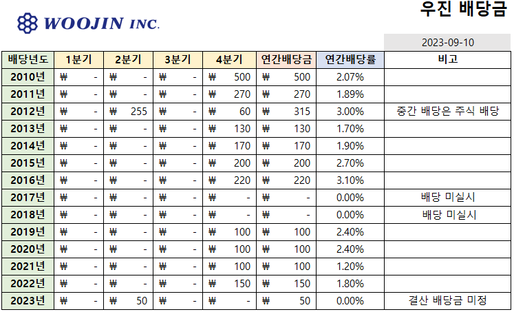 우진은 2023년 반기, 결산 배당을 실시하며,