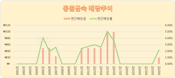 동원금속은 연 1회 1분기 배당을 실시하는 회사입니다.