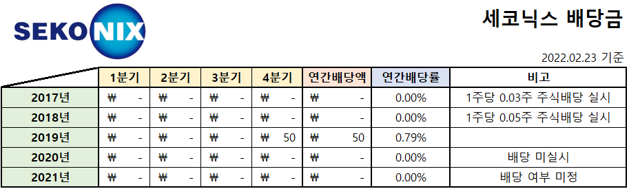 오늘은 세코닉스 배당액과