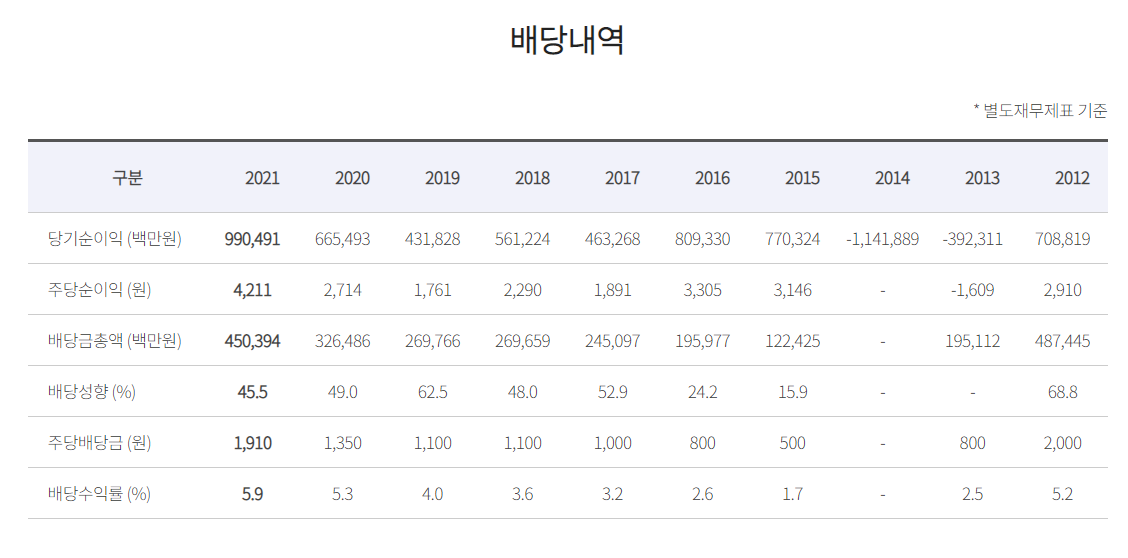 2021년도 배당금은 1,910원