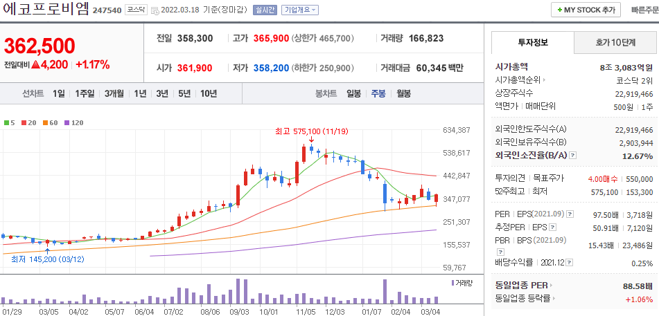안녕하세요, 주식 인플루언서 윤하공쥬 입니다. 오늘 소개 해드릴 종목은 에코프로비엠 입니다. 1. 기업소...
