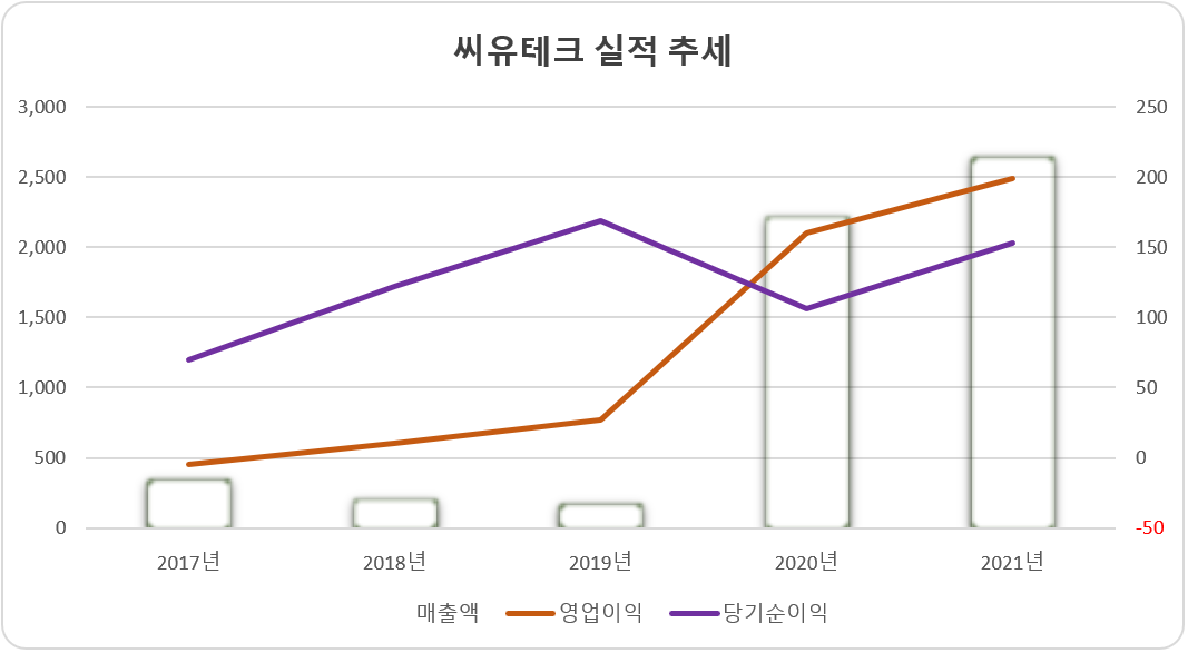 위의 씨유테크 실적 추세를 보면