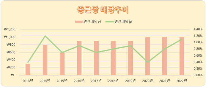 년도별 연간배당률은 아래와 같습니다.