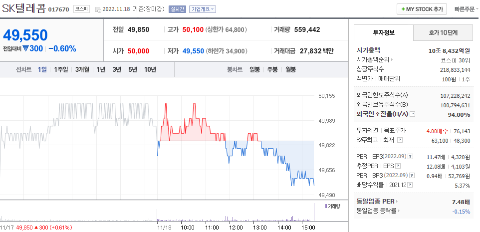 SK텔레콤 (배당, 매출액, 주가추이 등) - 코스피 정주행 시리즈
