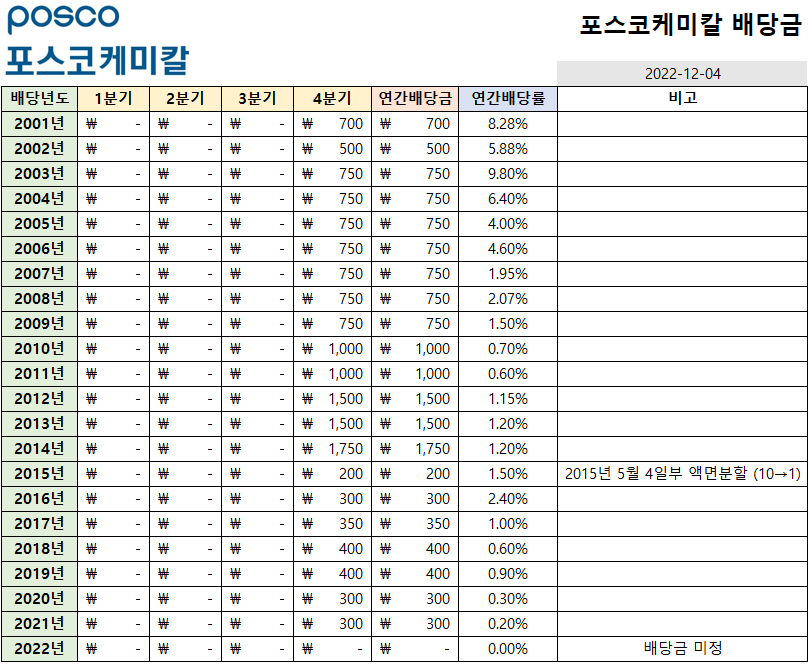 | 포스코, 포스코홀딩스 배당금, 배당률 (2001년~현재까지) (0) | 2022.11.22 |