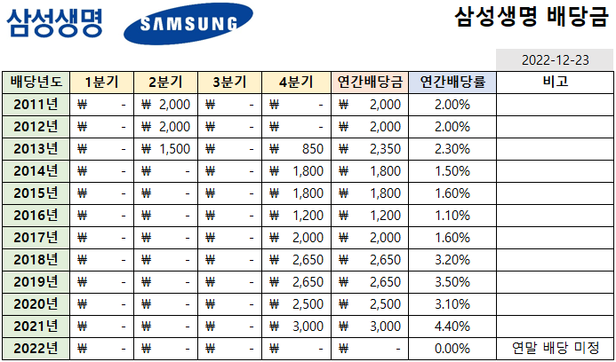 | 삼성화재 배당금, 배당률 (2001년~현재까지) (0) | 2022.12.08 |
