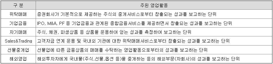 선물중개업 그리고 해외영업의 6개영업부문으로 구성이 됩니다.