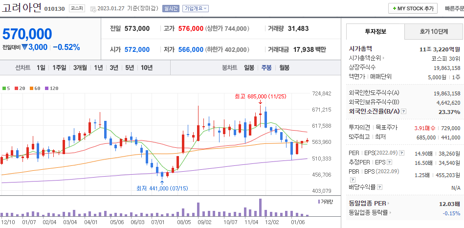 안녕하세요, 주식 종목 소개입니다. 다섯번째 주식 소개 종목, 고려아연[코스피, 010130] 입니다. 1. 기업...