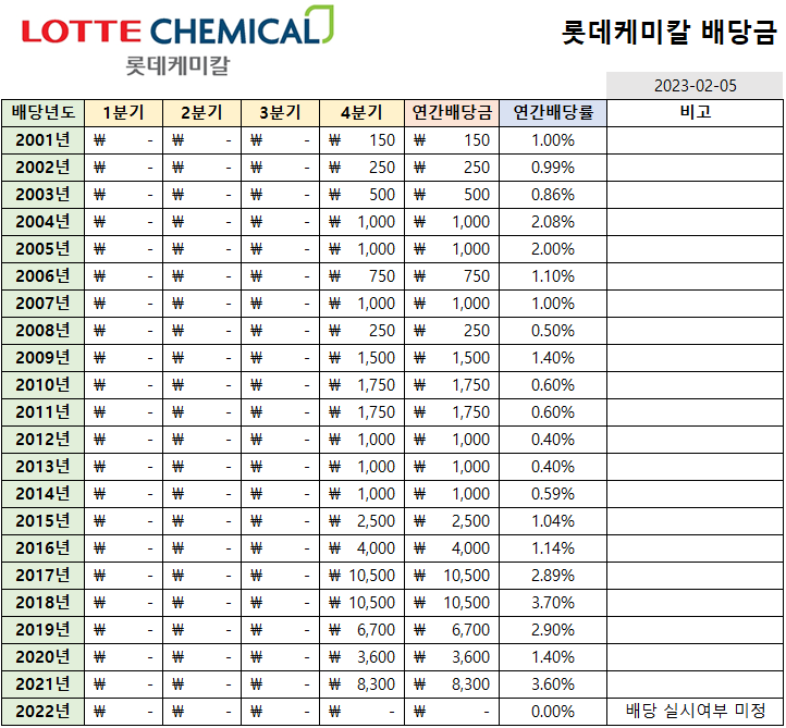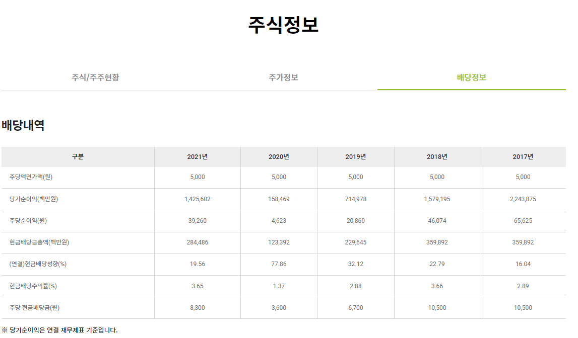 2022년도 배당률은 0% (배당 실시여부 미정)